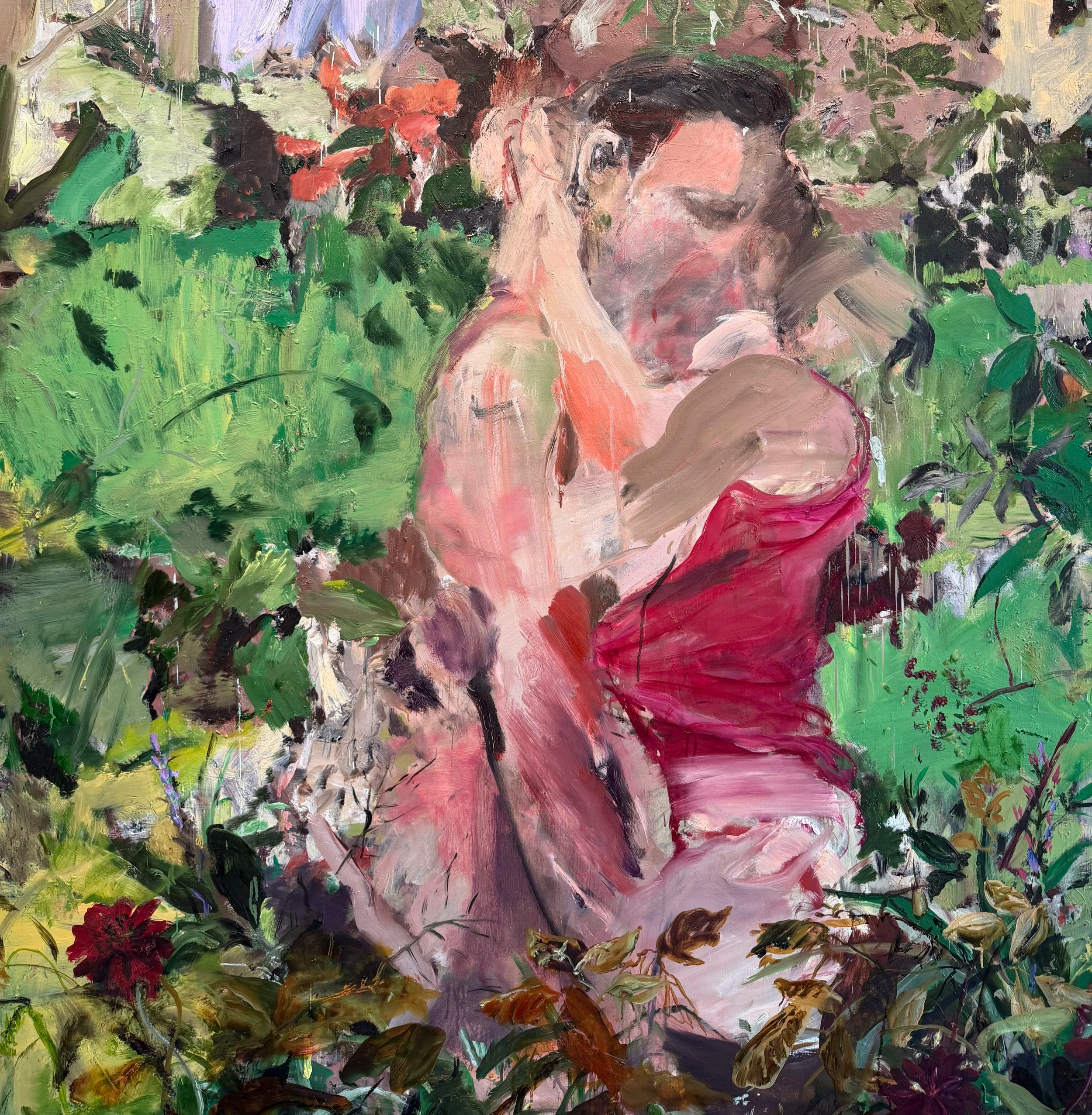 But the unease persists. Into Nature Walk with Paranoia (2024) creeps a sense of the uncanny. There is Nature Walk with Nymphs (2024), in which almost-human faces peer out of the trunks of trees, as if morphing directly into the woods. It too has a touch of Cezanne (it calls to mind his Bathers, in which naked bodies melt into the very banks of the river). In all these works, there is a slight sense of the barbaric, the innate danger that exists in any wilderness. But there is also love.